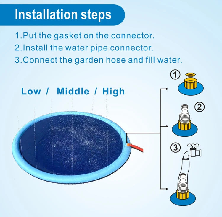 When playing on water, it is recommended to use it outdoors on grass or flat and smooth ground without any sharp objects on the outdoor ground. And please trim the dog's nails before use the sprinkler pad.