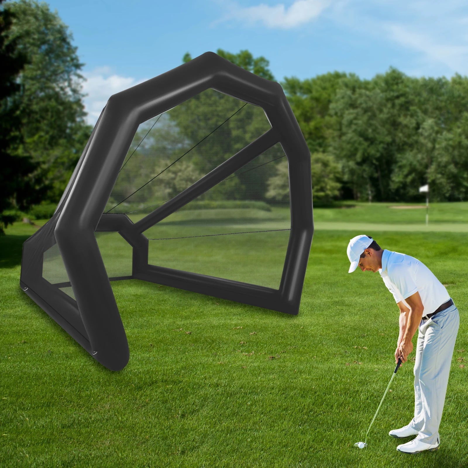 800W Inflatable Golf Practice Net Cage, Golf Practice Swing Simulator Tent with Blower for Backyards 110V, Black