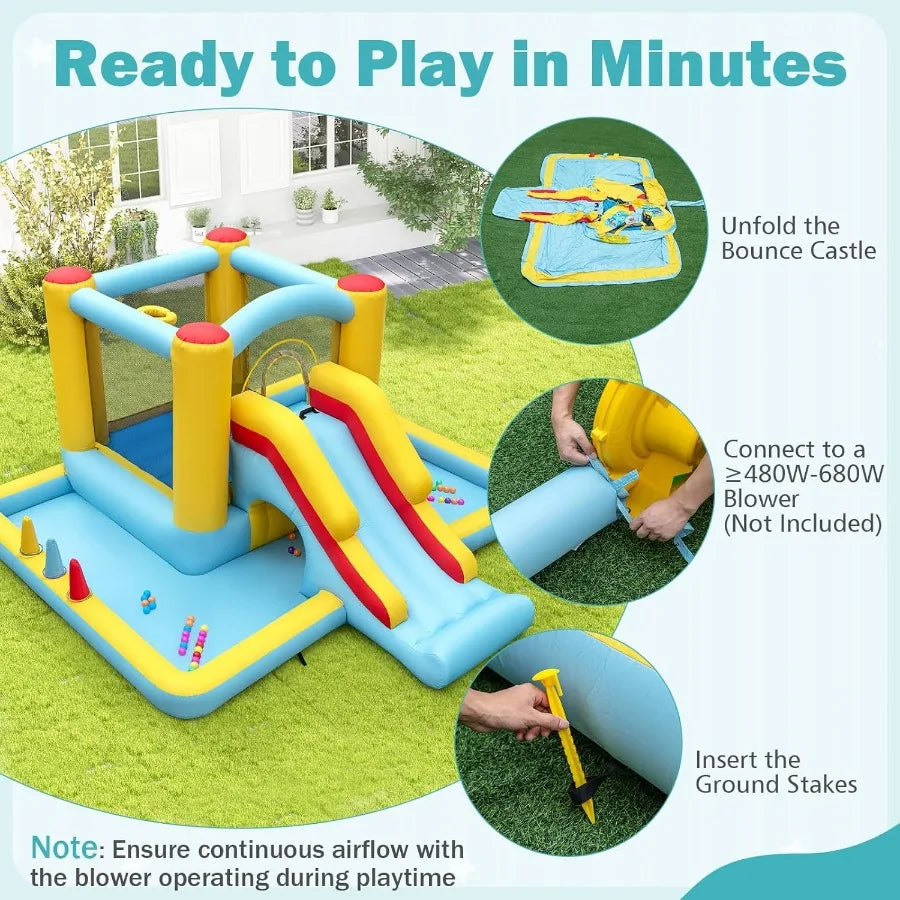 Inflatable Bounce House with Ball Pit Long Slide Tunnel Bouncy House for Aged 3+ Backyard Party Fun Bounce House with Slide for