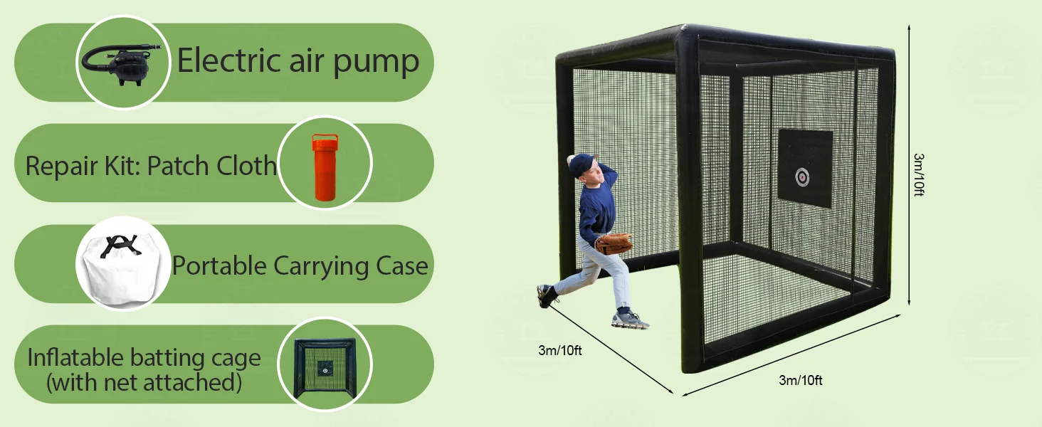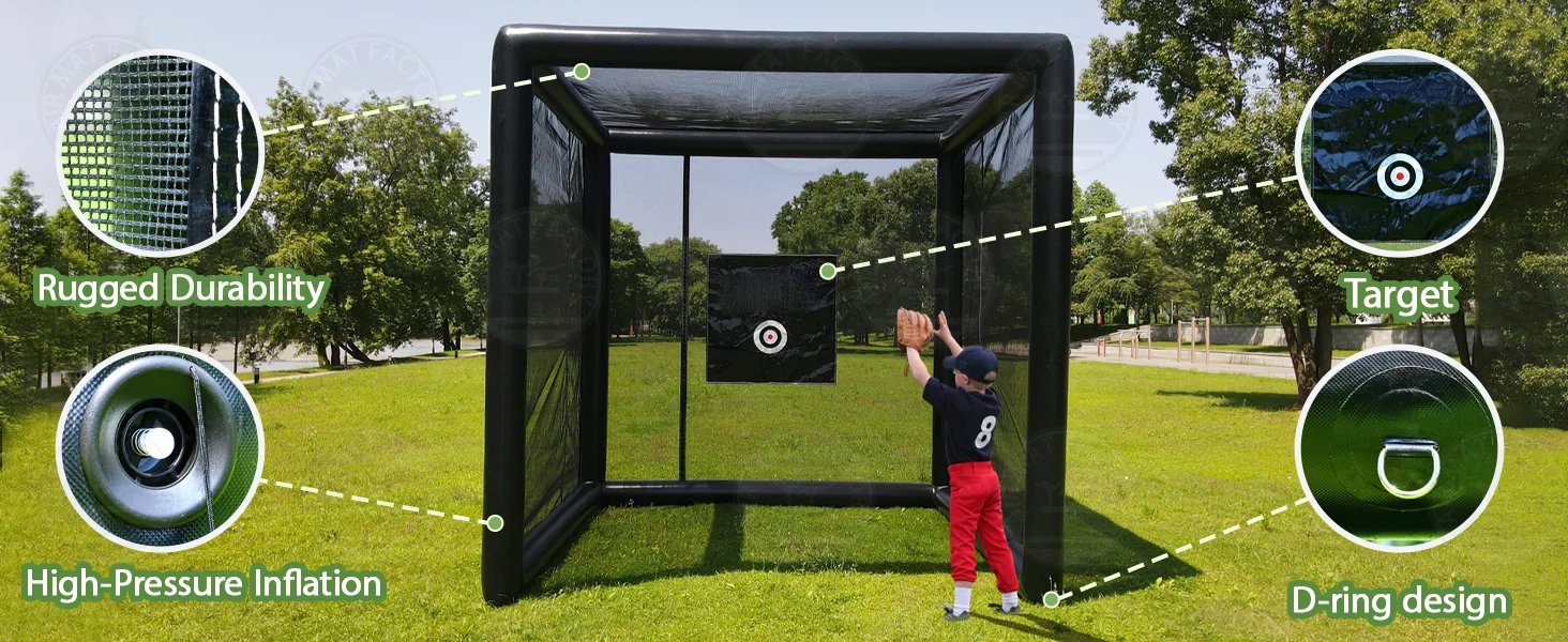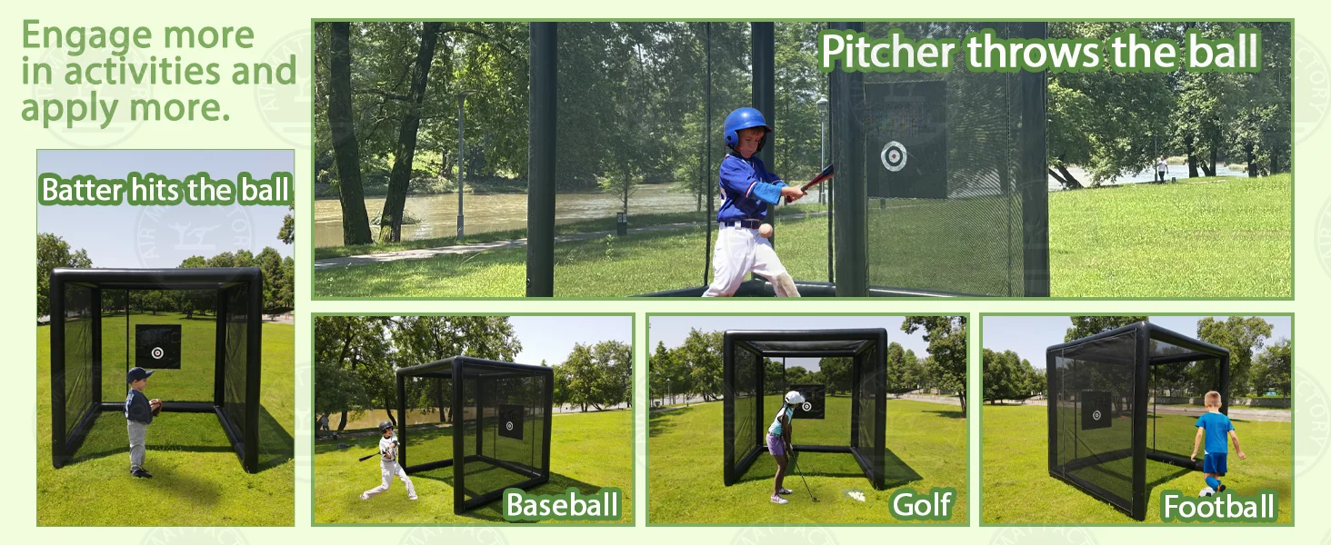 In stock in the US warehouse! PVC inflatable baseball/softball batting and pitching cage for children aged 5-10, portable baseball