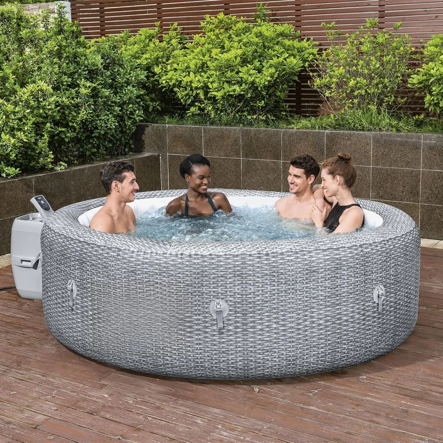 SaluSpa Sicily AirJet 7 Person Inflatable Hot Tub Round Portable Outdoor Spa with 180 Soothing AirJets and Insulated Cover, Gray