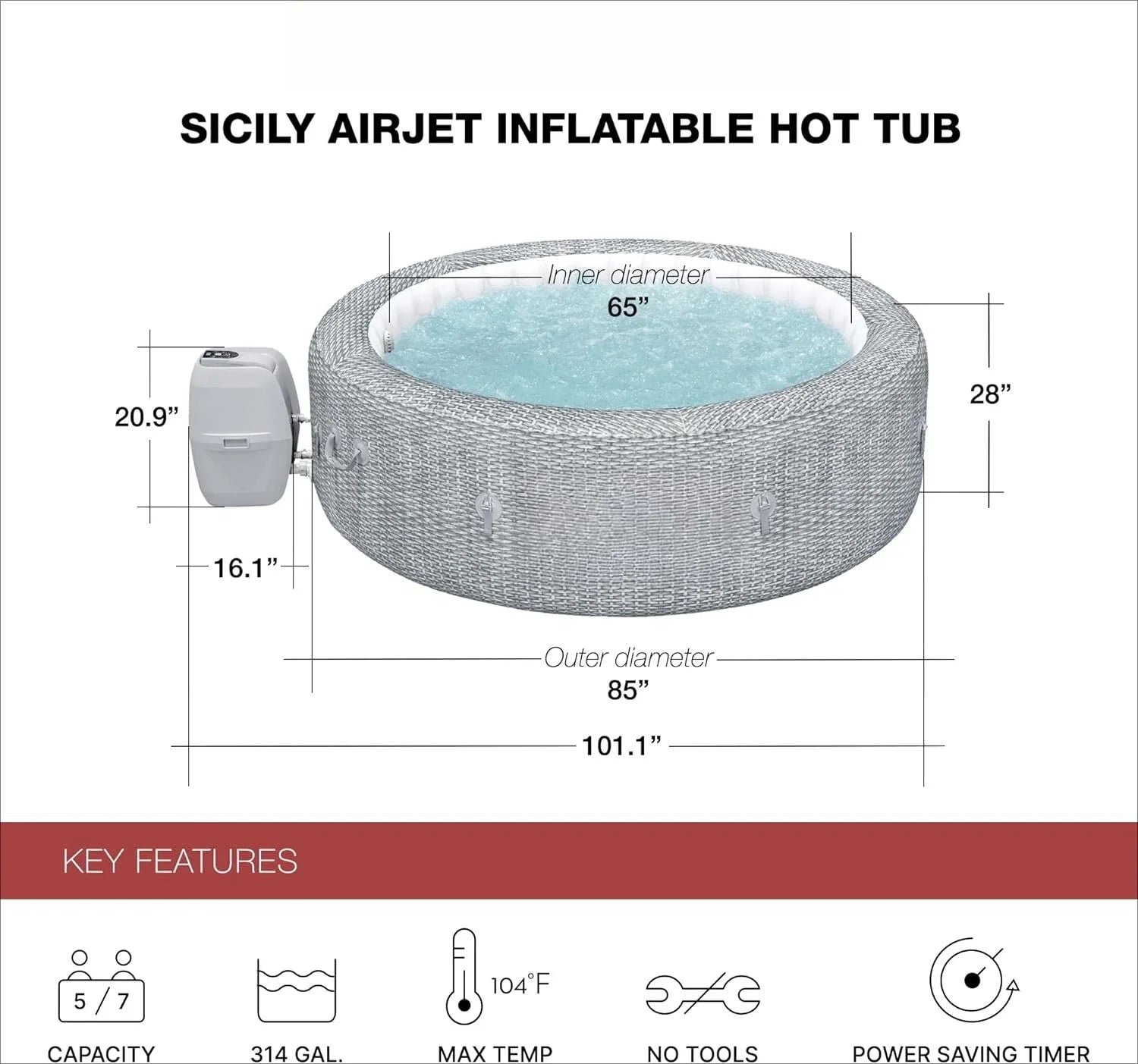 - Soothing Massage Experience: Immerse yourself in luxury with the SaluSpa Sicily AirJet outdoor hot tub, offering 180 warm bubbling jets for a relaxing massage, accommodating up to 7 people in ultimate comfort.