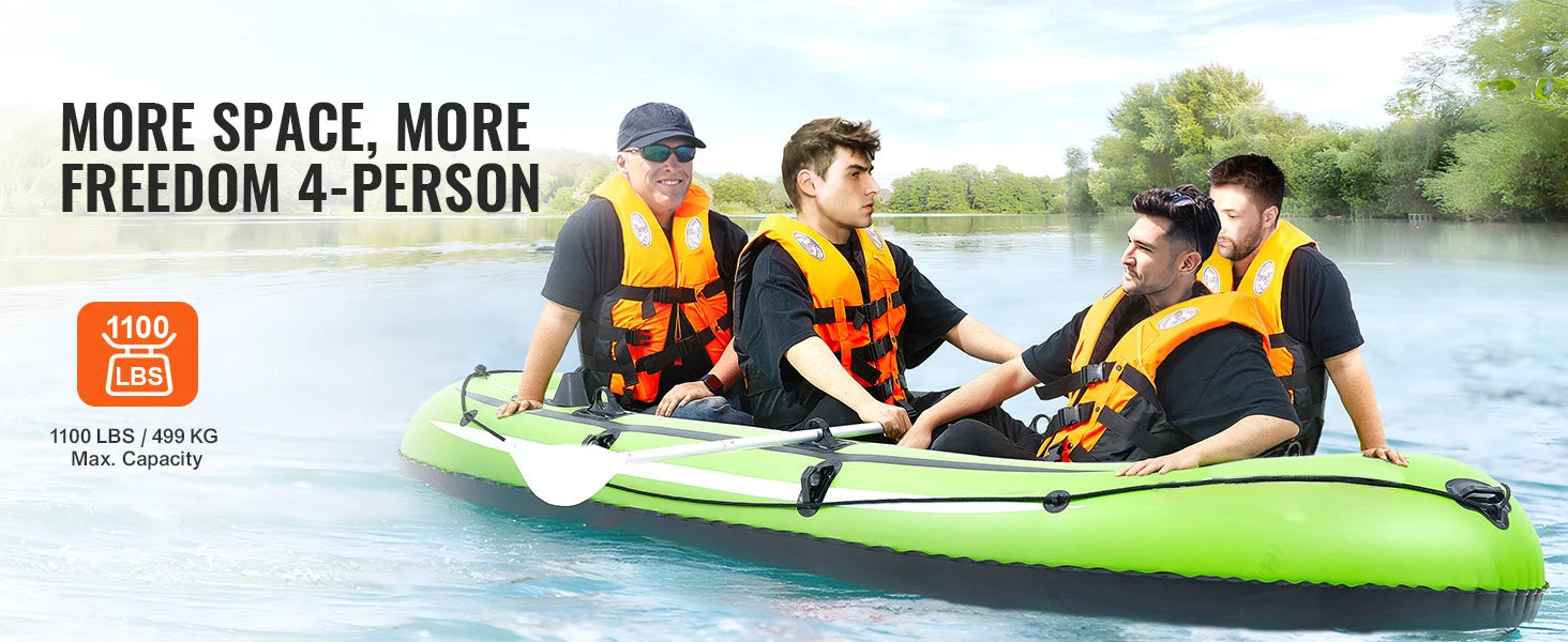 SucceBuy Inflatable Boat 4-Person Inflatable Fishing Boat Strong PVC Portable Boat Raft Kayak 45.6" Aluminum Oars Fit for Adults